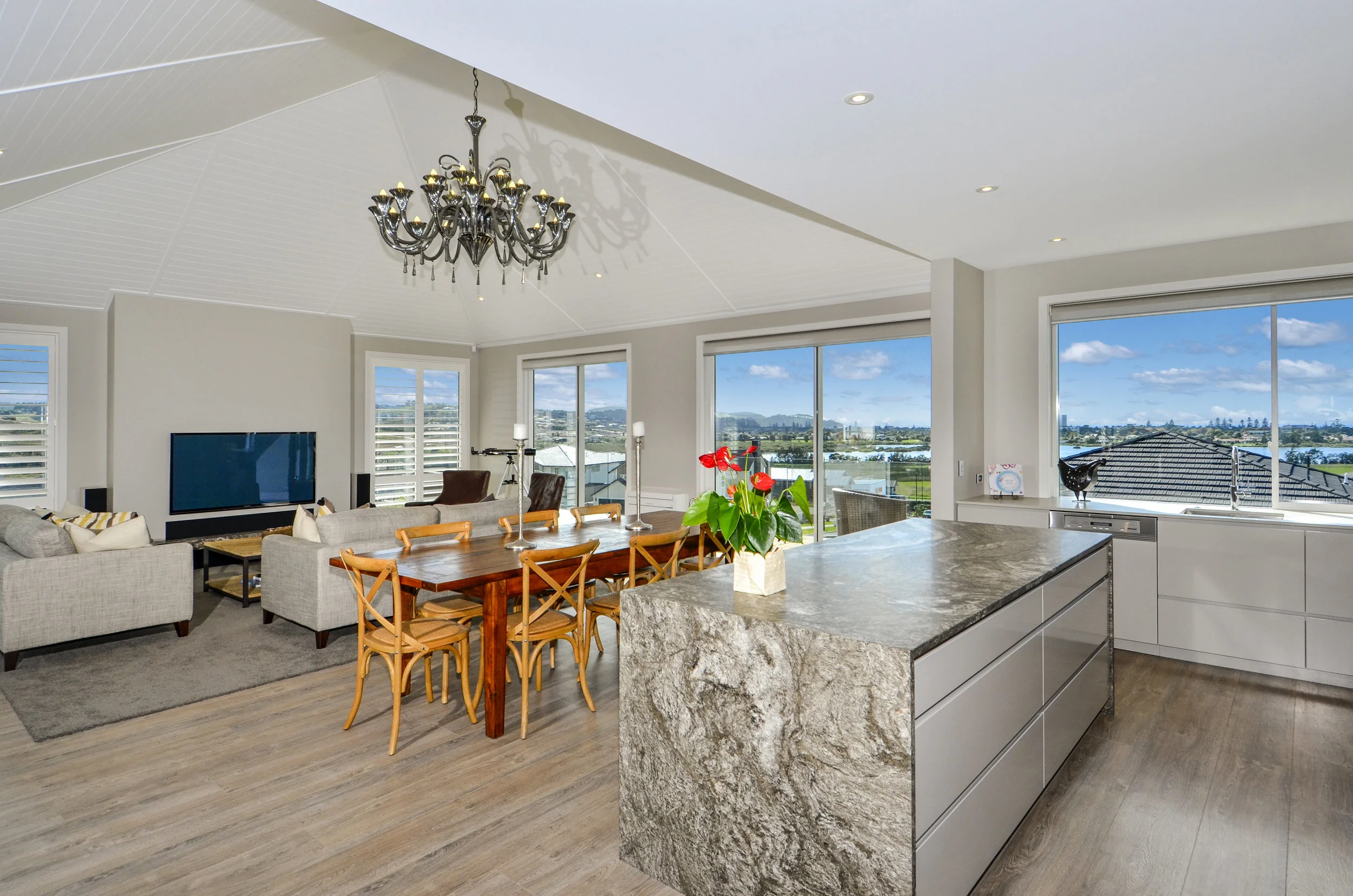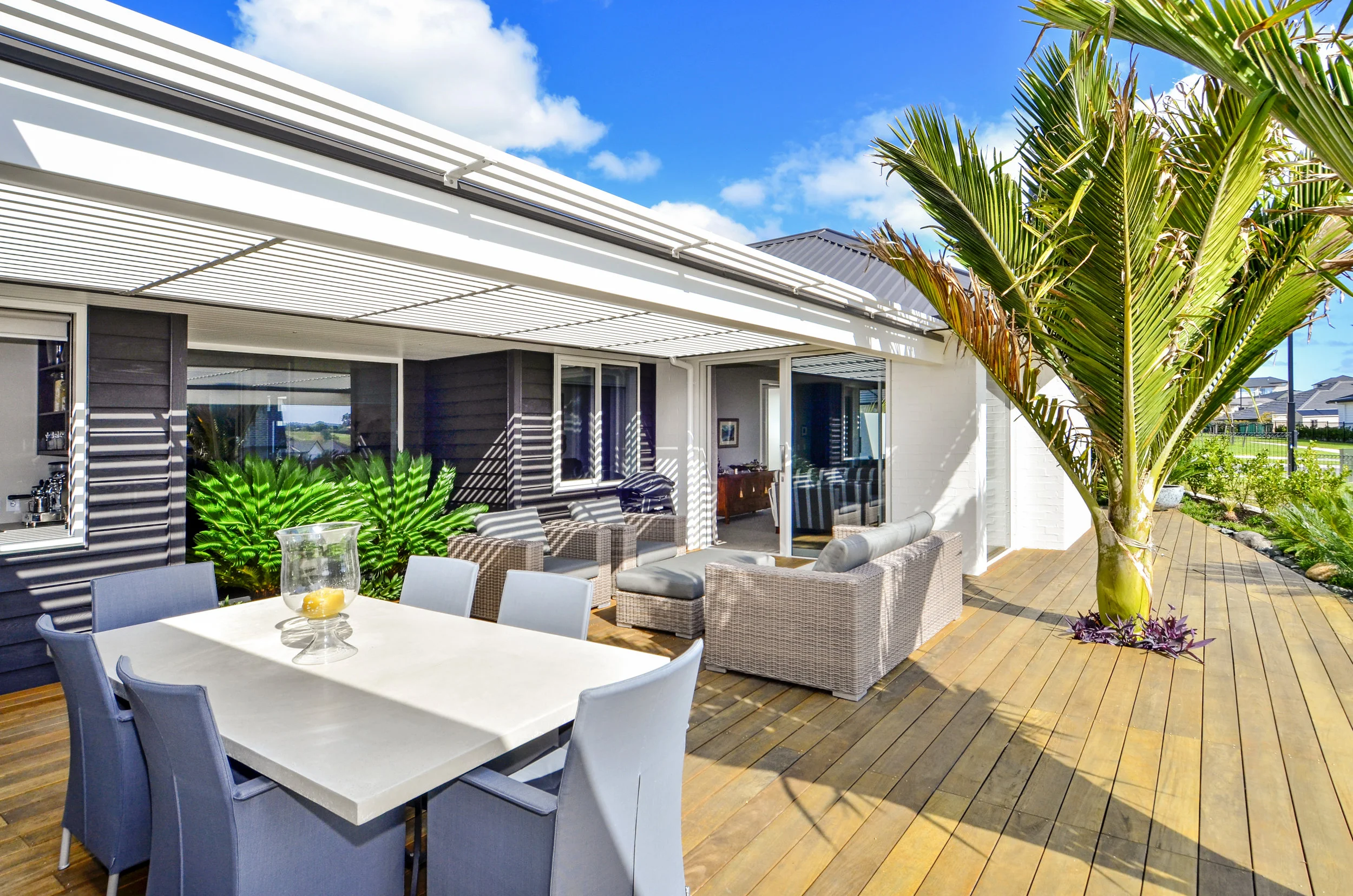 This smartly designed brick-and-tile Beach Haven beauty has timeless appeal. Three bedrooms, two bathrooms, a separate toilet and ample open-plan living are masterfully arranged on a tight 139sqm, while remaining light and comfortable. In the kitchen-dining area, a subtly raised ceiling allows for a generous feeling of space. Indoor-outdoor flow provides a lovely connection between the lounge and alfresco area. Decking sits well alongside the home’s wood floors, allowing outside to become one with the generous living area. It’s a great asset for entertaining. The barbecue is sheltered in case of unexpected sun showers. Perfect for laidback living or busy lifestyles, the easy-care kitchen features sleek stone benchtops and modcons. A switch in flooring signals that this is the heart of the home, gently drawing the line between kitchen and dining. Painted brick and Taranaki pine weatherboards add appeal to the exterior. A stepped gable roof to the entry adds design integrity and individuality.
