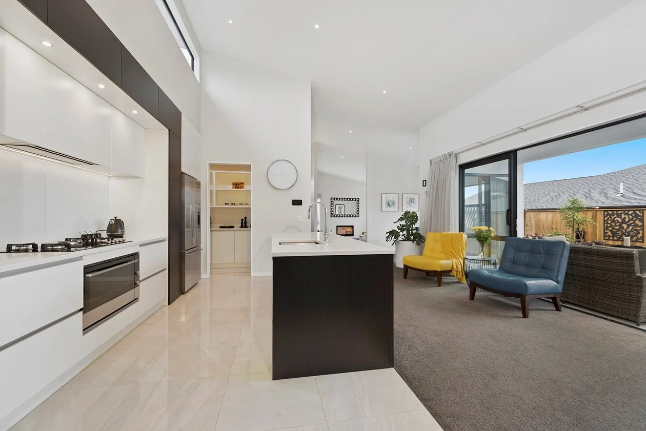 A traditional residence built to modern standards, this weatherboard wonder is right at home among its neighbours in its Auckland suburb. This design makes great use of space on a subdivided site. Four bedrooms, three bathrooms and two living areas are well proportioned on 234sqm. Warming timber flows from the entrance into the open-plan living domain. A fireplace adds ambience, while a ducted, balanced fresh-air system and thermally broken joinery keep the home perfectly temperate year-round. The contemporary kitchen pairs traditional tastes with modern twists. The butler’s pantry is a blessing. Bifold doors foster flow from the family area to a large wraparound deck bordered by pretty landscaping. This space basks in the sun on fine days. Built-in seating is a thoughtful touch. A large garage, separate laundry, and a guest suite complete the lower level. Upstairs is the master bedroom, two more bedrooms and bathrooms, and a toilet. A library nook with window seat beckons on rainy days.